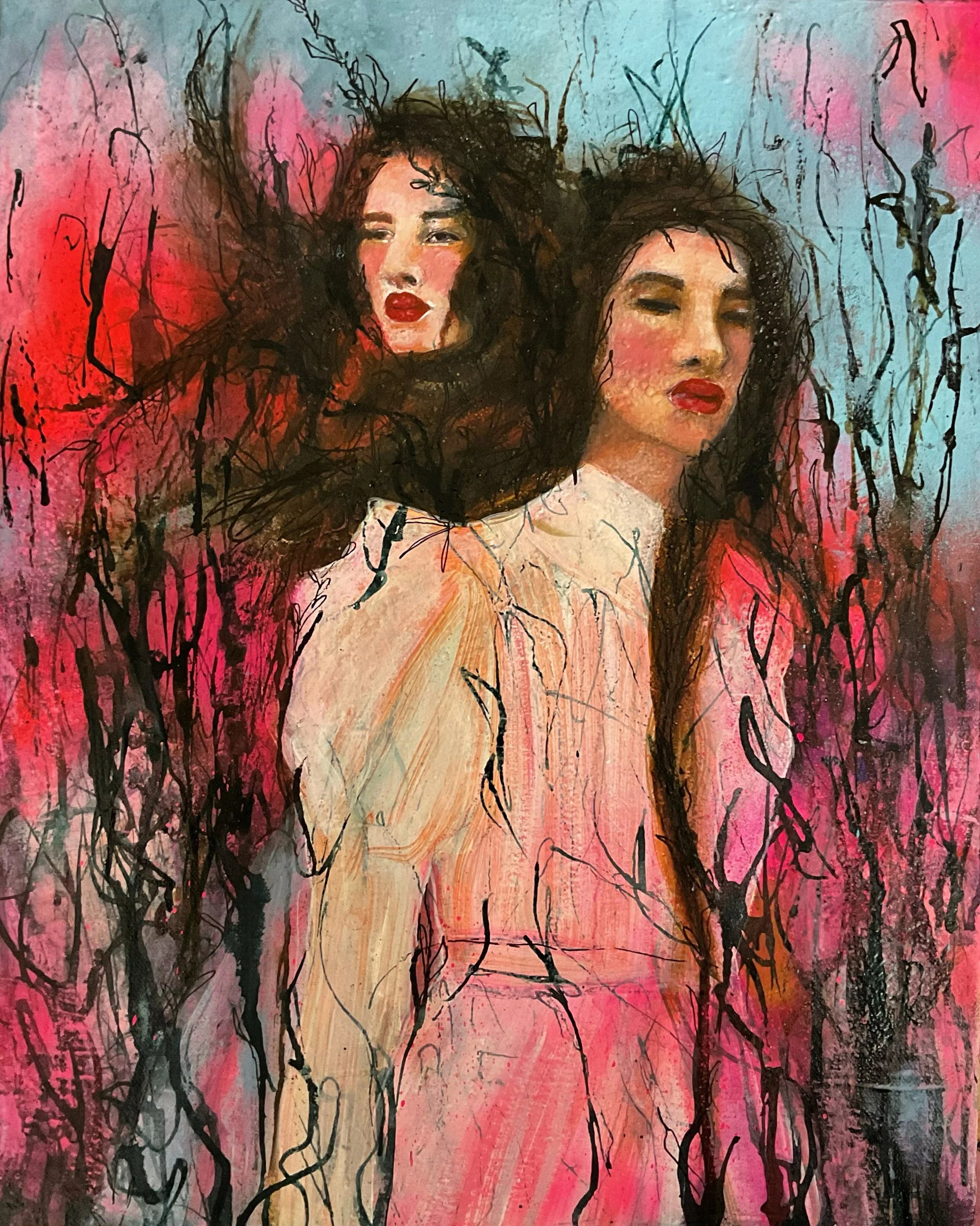 Threads that hold us together, 2024, Mixed media on canvas - 40 x 50 cm / 16 x 20 in.