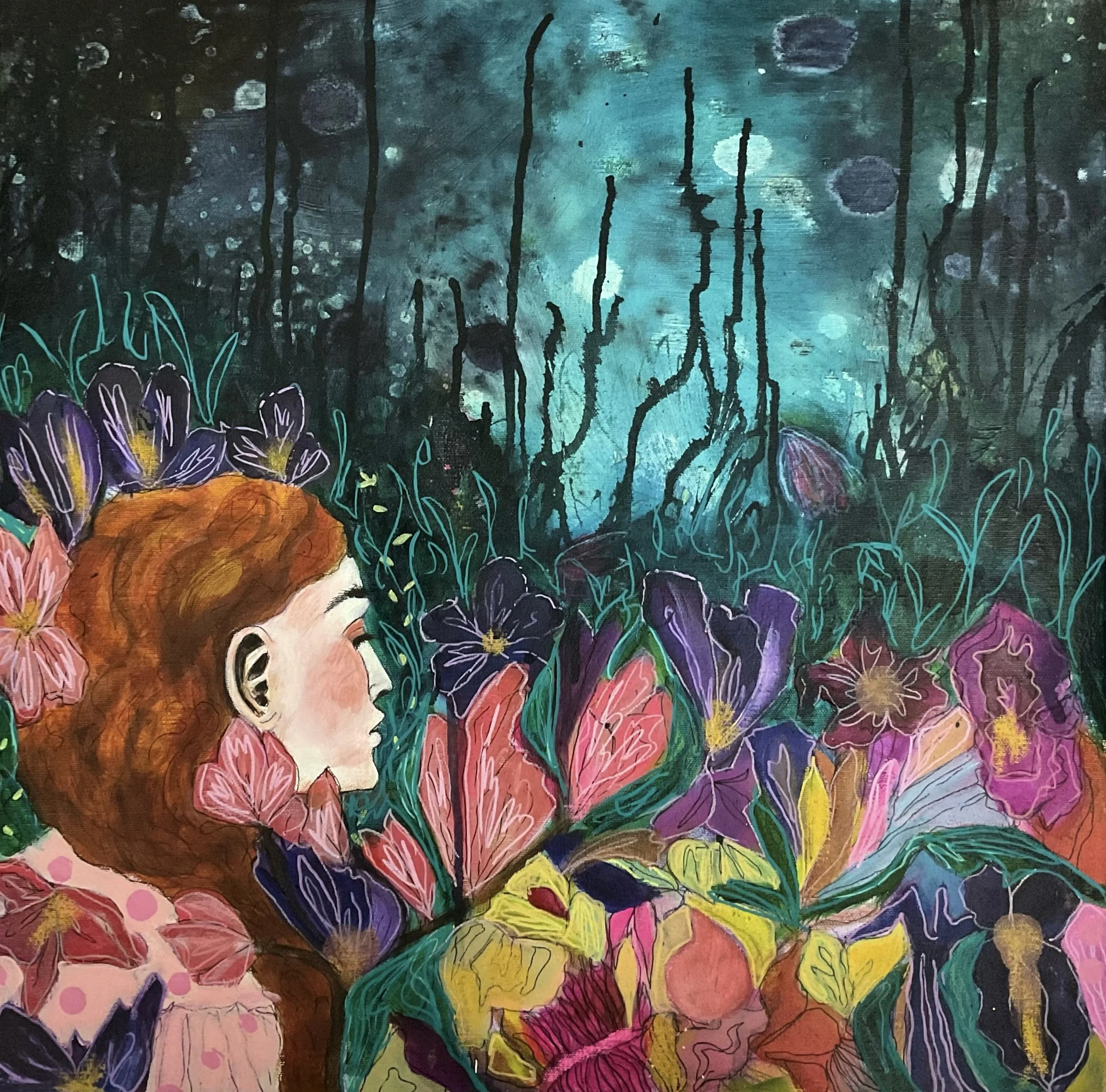 Blooming together, 2024, Mixed media on canvas - 50 x 50 cm / 20 x 20 in.